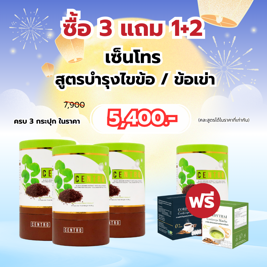 ผลิตภัณฑ์สำหรับการบำรุงข้อเข่า ซึ่งเซ็นโทรมีสารสกัดจากงาดำเป็นส่วนประกอบสำคัญโดยผ่านกระบวนการสกัดด้วยเอ็นไซม์จากธรรมชาติหลายชนิด ซึ่งนวัตกรรมการสกัดด้วยเอ็นไซม์ทำให้สามารถสกัดสารเซซามิน เซซามอล และ เซซาโมลิน ได้อย่างมีประสิทธิ์ภาพ ทั้งยังมีความปลอดภัยสูงและปราศจากสารตกค้าง